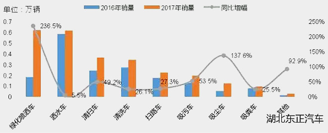2017年1~7月市政環(huán)衛(wèi)車各細分市場表現(xiàn)