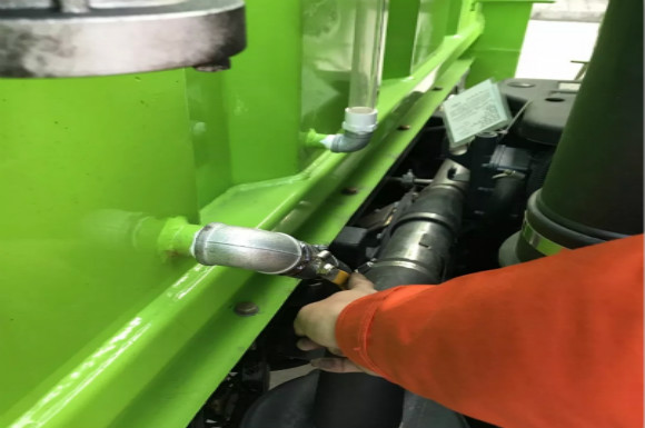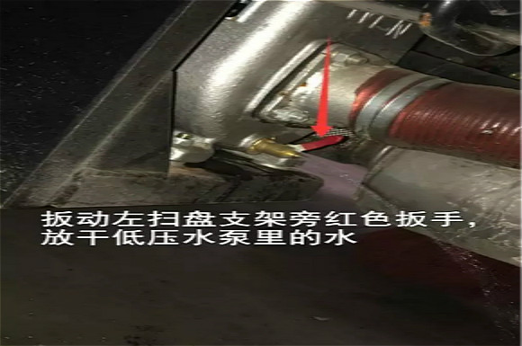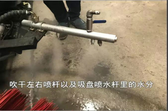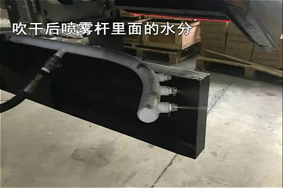 4.啟動(dòng)底盤(pán)發(fā)動(dòng)機(jī),采用氣吹水,吹干滯留在左右噴桿、吸盤(pán)噴水桿、后噴霧桿里的水分