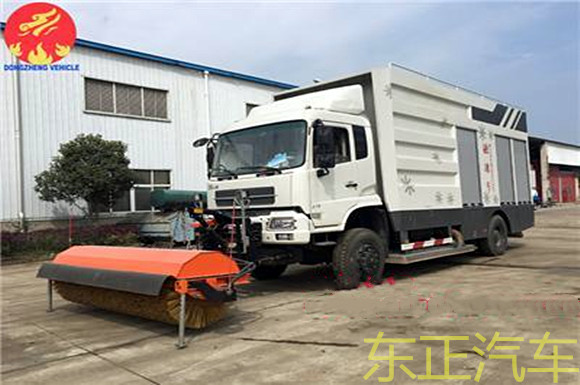 前置掃雪滾刷采用聚丙烯鋼絲尼龍混合柔性材質制成,滾刷直徑620mm,寬度2.8-3.5米,滾刷提升高度260mm,有效清雪寬度2.5-3米,扭矩900n.m,清除浮雪速度30-50KM/H,清障壓實雪速度15-20km/h,滾刷轉速300-450R/min,徹底清掃路面殘雪,雪鏟等裝置,清除路面浮雪,厚冰。剩余路面附著的冰,由融冰盤清除。