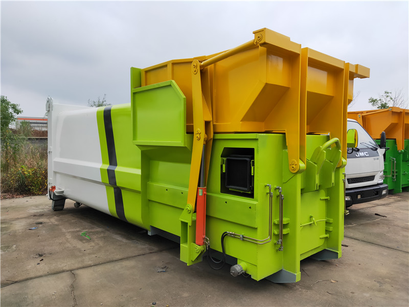 勾臂垃圾車(chē)【車(chē)廂可卸式垃圾車(chē)】車(chē)體和垃圾箱可完全分離,由液壓系統(tǒng)來(lái)完成收箱/放箱,在平日里可將車(chē)載垃圾箱放置到各個(gè)垃圾收集點(diǎn),待垃圾收集滿后,該車(chē)可直接開(kāi)赴收集點(diǎn),通過(guò)液壓系統(tǒng)的操控,可將垃圾車(chē)后座上加裝的勾臂放下,掛住站內(nèi)箱體前端的連接點(diǎn),將垃圾箱拉**車(chē)體的后座上,此時(shí)即可開(kāi)動(dòng)車(chē)輛,將垃圾運(yùn)送垃圾處理站內(nèi),進(jìn)行自卸式傾倒,優(yōu)點(diǎn)就是可一車(chē)配多斗,一輛車(chē)就可以維持?jǐn)?shù)個(gè)垃圾收集站的運(yùn)轉(zhuǎn),效率高,且箱體為密封式設(shè)計(jì),不會(huì)造成二次污染。