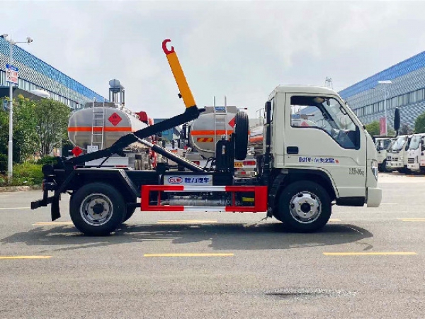 勾臂垃圾車【車廂可卸式垃圾車】車體和垃圾箱可完全分離,由液壓系統(tǒng)來完成收箱/放箱,在平日里可將車載垃圾箱放置到各個垃圾收集點,待垃圾收集滿后,該車可直接開赴收集點,通過液壓系統(tǒng)的操控,可將垃圾車后座上加裝的勾臂放下,掛住站內(nèi)箱體前端的連接點,將垃圾箱拉**車體的后座上,此時即可開動車輛,將垃圾運送垃圾處理站內(nèi),進行自卸式傾倒,優(yōu)點就是可一車配多斗,一輛車就可以維持數(shù)個垃圾收集站的運轉(zhuǎn),效率高,且箱體為密封式設計,不會造成二次污染。