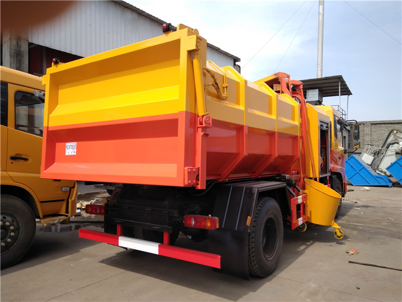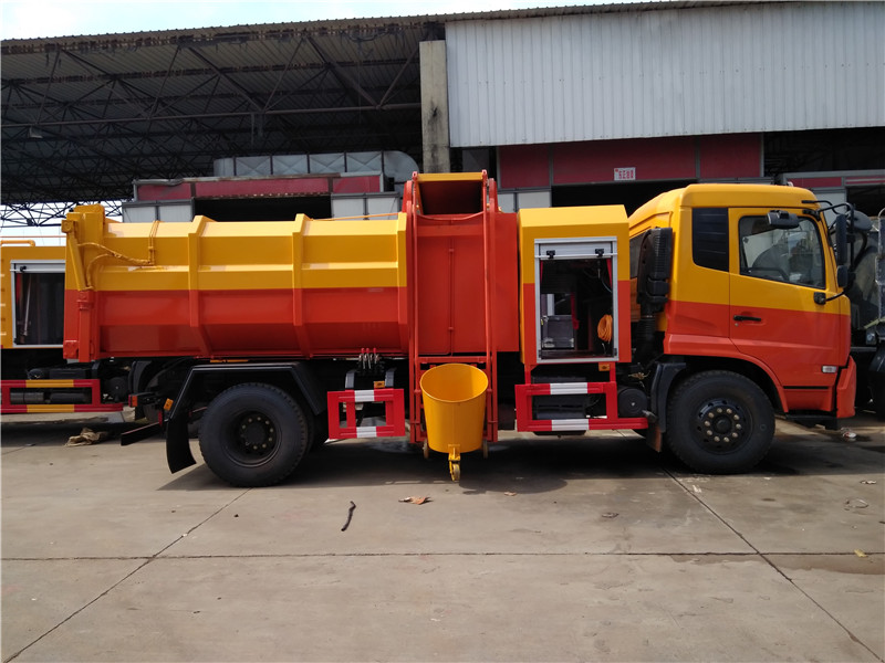 掛桶式糞污糞便清運車配掛桶提升機,可配合垃圾桶使用,通過液壓提升裝置可將垃圾桶內(nèi)污泥、糞污慢慢提升傾倒入車廂內(nèi),裝滿后運輸?shù)绞占c進行自卸式傾倒。適用于全國通用標準的120升、240升垃圾桶,鐵桶、塑料桶等。優(yōu)點在于一臺車可配多個垃圾桶使用,密封好,運輸途中滴水不漏,駕駛室內(nèi)外兩用操控,司機師傅不下車在駕駛室內(nèi)即可完成箱體卸料。廣泛用于收運含水污泥、糞污糞便、含水垃圾、淤泥等。
